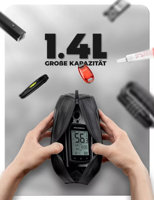 Borsa da telaio ROCKBROS da 1,4 litri per telai di biciclette impermeabili fino a 6,8 pollici