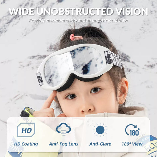 Maschere da sci Qunature, maschere da snowboard per bambini e adulti che portano gli occhiali, antiappannanti